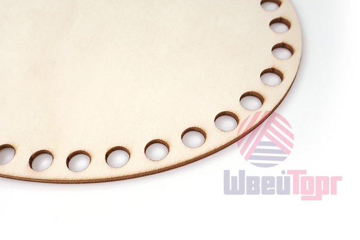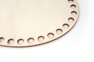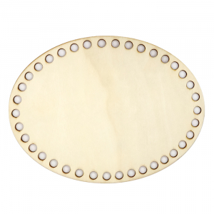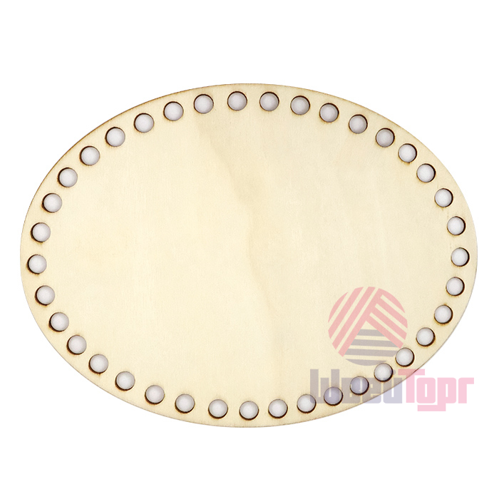 Овальная заготовка-основа для вязания изготовлена из светлой фанеры толщиной 2,5 мм. По краю расположено 38 отверстий диаметром 8 мм с расстоянием между ними 5-6 мм. Идеальна для создания вязаных корзин, и органайзеров из трикотажной, полиэфирной или хлопковой пряжи. Лёгкий, но прочный материал обеспечивает устойчивость готовой конструкции, а равномерно расположенные отверстия гарантируют равномерное натяжение нити при обвязке. Подходит как для начинающих, так и для опытных рукодельниц, желающих создавать стильные и функциональные предметы интерьера. Универсальная основа для реализации различных дизайнерских задумок – от классических корзин до оригинальных подвесных кашпо.