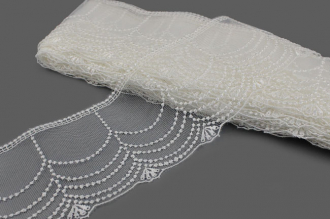 Лёгкое и невесомое кружево с вышивкой в виде ненавязчивых растительных мотивов. Это тонкое и воздушное кружево можно использовать в качестве украшения одежды, детских конвертов, домашнего текстиля и конечно же применять в ваших творческих проектах. Вышивка на сетке имеет лёгкую фактуру и хорошо держит форму.