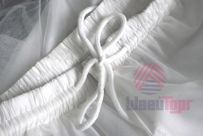 Несмотря на внушительный объём, изделие остаётся невесомым благодаря лёгким, дышащим материалам. Продуманная конструкция радует надёжностью: регулировка объёма талии осуществляется удобным шнурком, а мягкая липучка страхует завязки, исключая случайное скольжение. Особый шарм придаёт изящное кружево шириной 2,5 см по нижнему краю – оно деликатно выглядывает из-под юбки, добавляя образу романтичности. Высота подъюбника – 85 см.