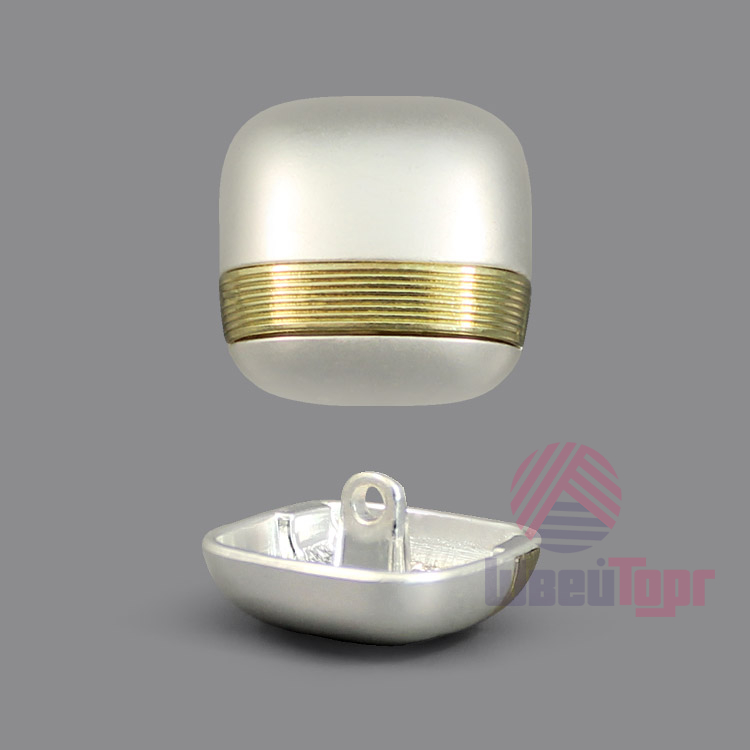 Эта пуговица на ножке выполненная в сдержанном современном стиле станет идеальным акцентом для делового гардероба. Она представляет собой лаконичный «мягкий» квадрат из металла с деликатно скруглёнными углами, имеет матовое серебристое покрытие. Её лаконичный дизайн оживляет тонкая золотистая полоска с фактурной поверхностью, проходящая по нижнему краю.