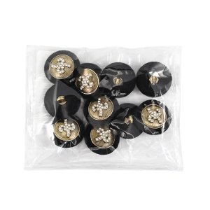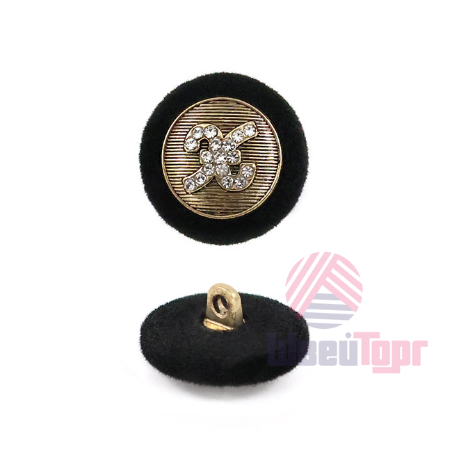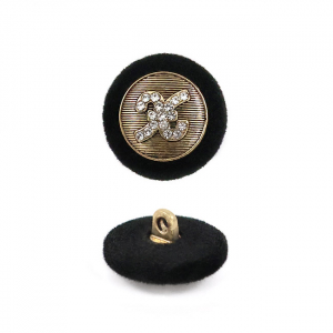 Прекрасная деталь для ваших костюмов и жакетов – эта пуговица сочетает в себе сдержанную роскошь и оригинальный дизайн. Её основа, выполненная из металла, покрыта тактильно приятной бархатной фактурой глубокого чёрного цвета, которая эффектно контрастирует с золотистой "сердцевиной". Центр украшает объёмный декоративный элемент, усыпанный мелкими стразами, – он завораживающе искрится и играет бликами при любом освещении, добавляя образу изысканности и индивидуальности.
