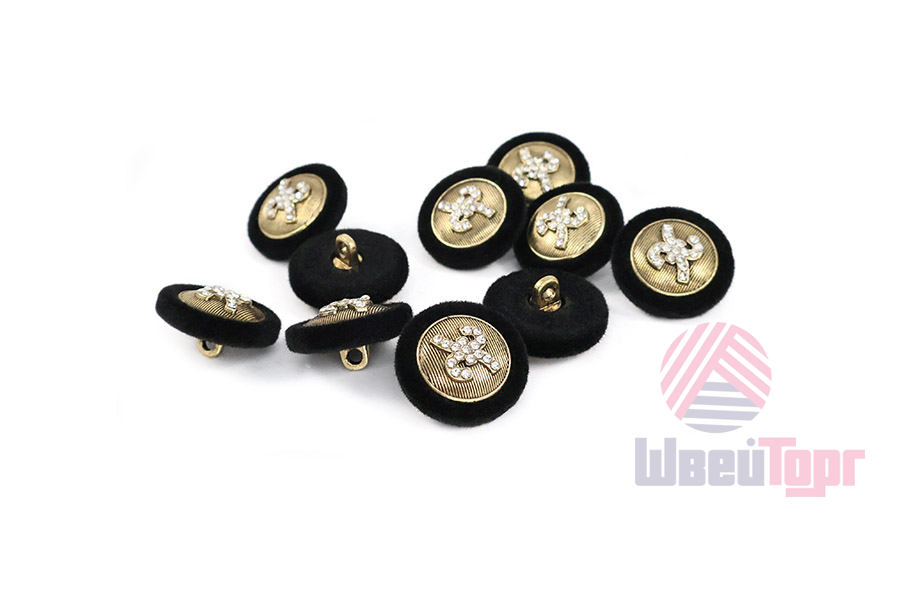 Купить Пуговица №3686 28L чёрный со стразами 1/10 шт в Казани оптом по цене 261 руб. с доставкой