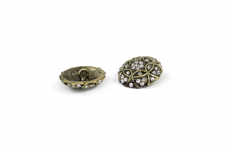 Эта элегантная пуговица, станет изысканным акцентом вашего изделия. У пуговицы оригинальный дизайн, с лицевой стороны она усыпана мелкими стразами, переливающимися на свету. Диаметр пуговицы: 2 см.