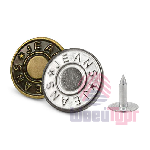 Стильная металлическая пуговица, представлена в двух цветах – матовый чёрный и антик. Пуговица имеет плоскую форму и декор в виде надписи – "Jeans Jeans ". Эта пуговица станет стильным завершающим штрихом для ваших изделий из джинсы, будь то джинсы, джинсовые шорты или джинсовые куртки. В комплект входят надёжные гвоздики для крепления.