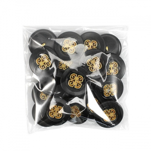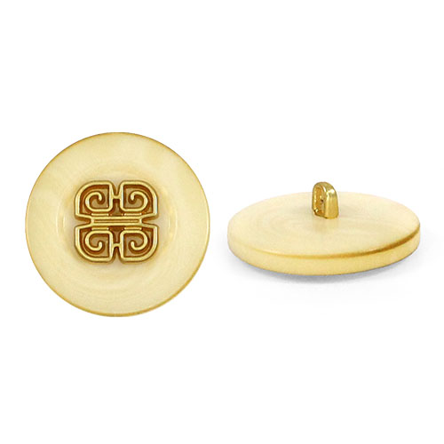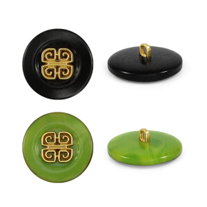 Главная особенность данной пуговицы – декоративный накладной элемент, который создаёт яркий акцент. Благородный блеск золотого центрального элемента, эффектно контрастирует с основными цветами пуговицы – кремовым, зелёным и чёрным, позволяя подобрать идеальный вариант под любой стиль.