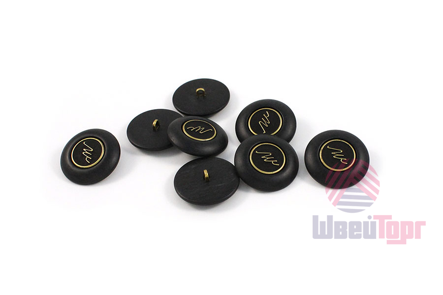 Пластиковая пуговица на ножке для создания стильного образа. Пуговица собрана из двух частей – матовая, с эффектом разводов основа и бронзовый накладной элемент, в виде стилизованной надписи. Сдержанный и интересный элемент для оригинального образа. Пуговица предсталена в двух расцветках: молочный и чёрный.