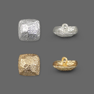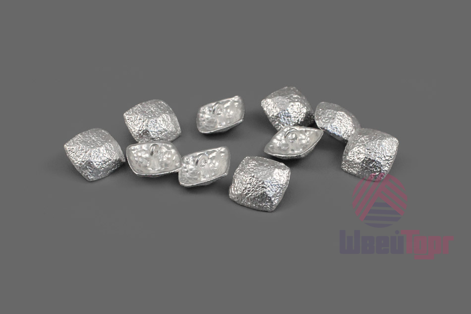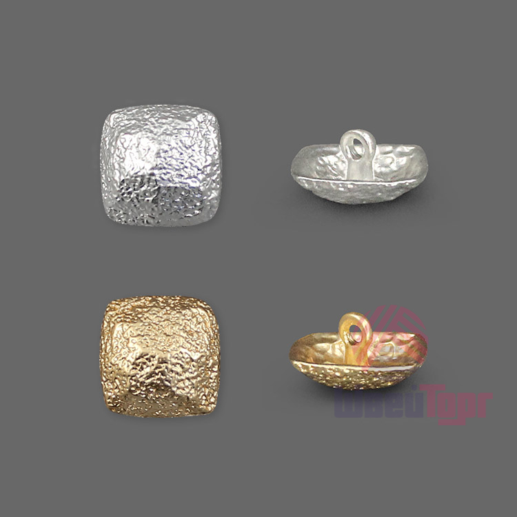 Стильная металлическая пуговица на ножке, имеет квадратную форму с мягкими углами - 15х15 мм. Пуговица станет отличным украшением ваших костюмов, жакетов и стильных рубашек.