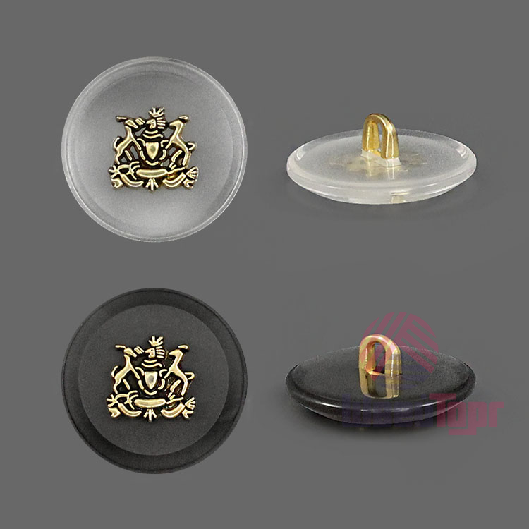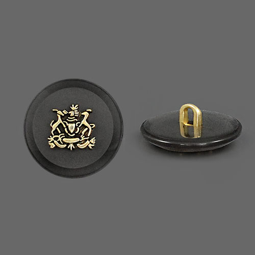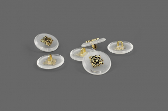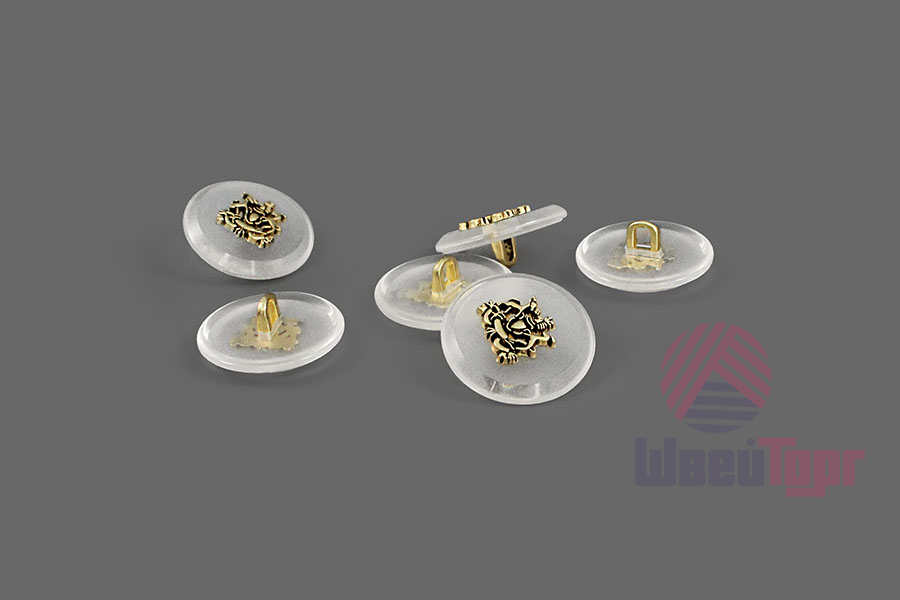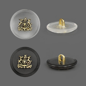 Пластиковая пуговица на ножке для создания стильного образа. Пуговица собрана из двух частей – полупрозрачная матовая основа и золотистый накладной элемент, в виде стилизованного герба. Сдержанный и интересный элемент для оригинального образа.