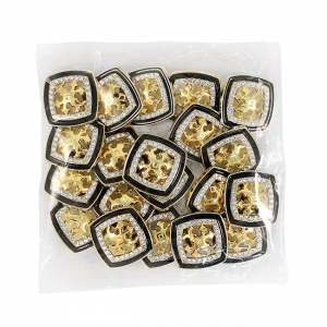 Позвольте вашему наряду расцвести! Эта металлическая пуговица напоминает драгоценную миниатюру. Её оригинальный дизайн завораживает: основа из золотистого металла, с контрастным чёрным ободком по краю, всё это прекрасно гармонизирует с акцентным резным элементом в самом центре и тонкой рамкой из мелких страз.
