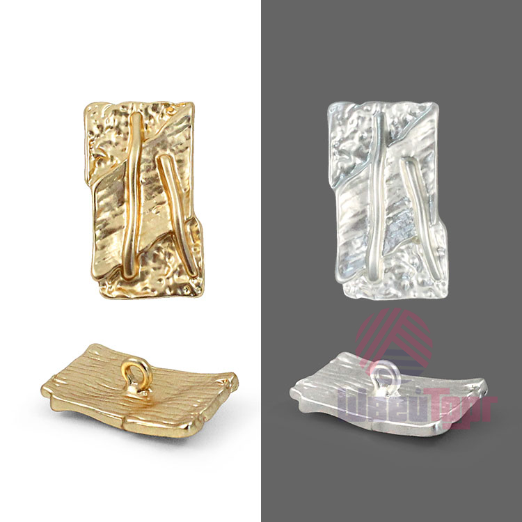 Эта пуговица на ножке сразу привлекает внимание своей нестандартной прямоугольной формой и уникальной фактурой, напоминающей объёмные стилизованные складки. Такой выразительный дизайн делает её настоящим акцентом, способным преобразить и украсить любой предмет одежды. Пуговица представлена в двух благородных цветах – матовое серебро и матовое золото, что позволяет подобрать идеальную фурнитуру для вашего проекта, добавляя ему индивидуальности и стиля.