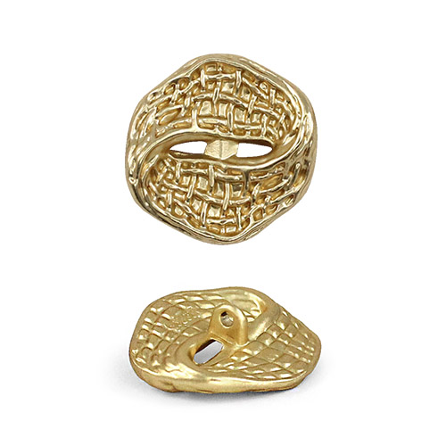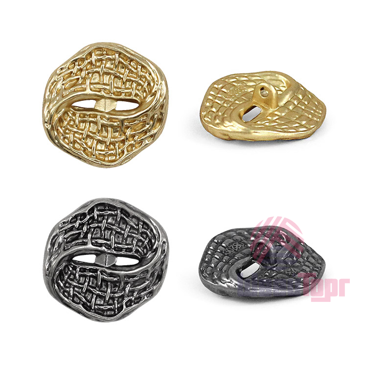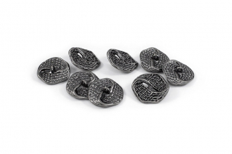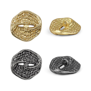Эта металлическая пуговица на ножке привлекает внимание своим уникальным дизайном. Пуговица напоминает плоское перекрученное кольцо, дополненное выразительной фактурной поверхностью. Дизайн пуговицы – это баланс смелой оригинальности и сдержанного минимализма. Такие пуговицы станут идеальной стильной деталью для жакета или костюма, добавляя образу индивидуальности и современное звучание.