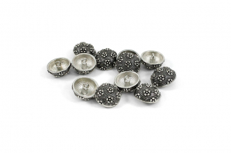 Пуговица доступна в двух цветах – чернённый и антик – оба варианта выгодно подчёркивают рельефную поверхность и добавляют пуговице нотку роскоши. Прочная ножка обеспечивает удобное пришивание, а необычный дизайн делает эту пуговицу настоящим акцентом в любом образе. Данные пуговицы прекрасно подойдут для ваших костюмов и жакетов.