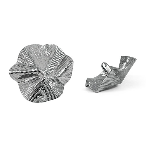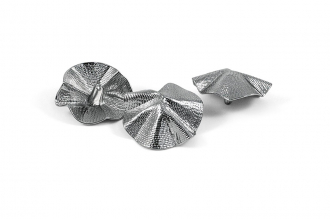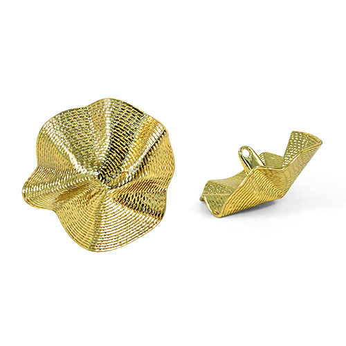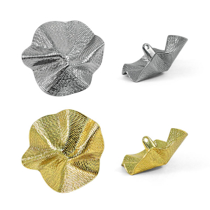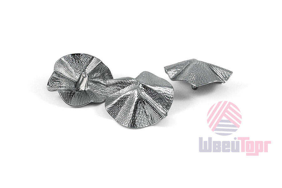 Стильная пуговица для тех, кто ценит современный дизайн и внимание к деталям. Её уникальная «мятая» форма и яркий блеск, создают броский и стильный акцент. Мерцание на свету добавляет пуговице нотку роскоши, делая её идеальным выбором для дизайнерских проектов и преображения вашего гардероба. Пуговица представлена в двух цветах – серебро и золото.