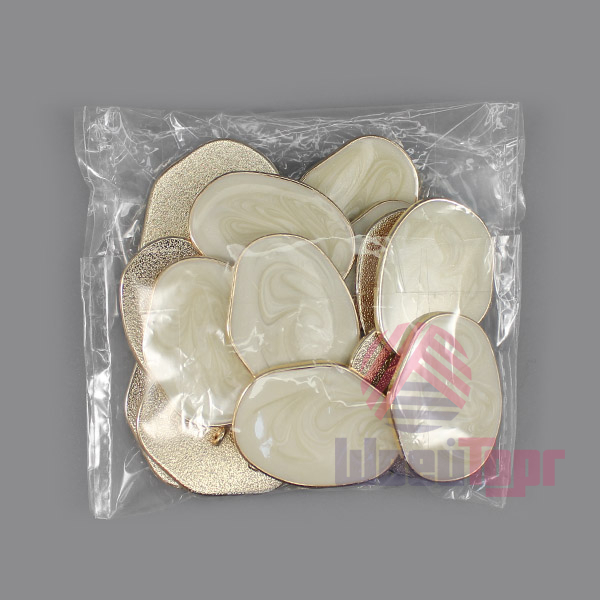Цена указана за 1 упаковку пуговиц. Размер 37х28 мм.