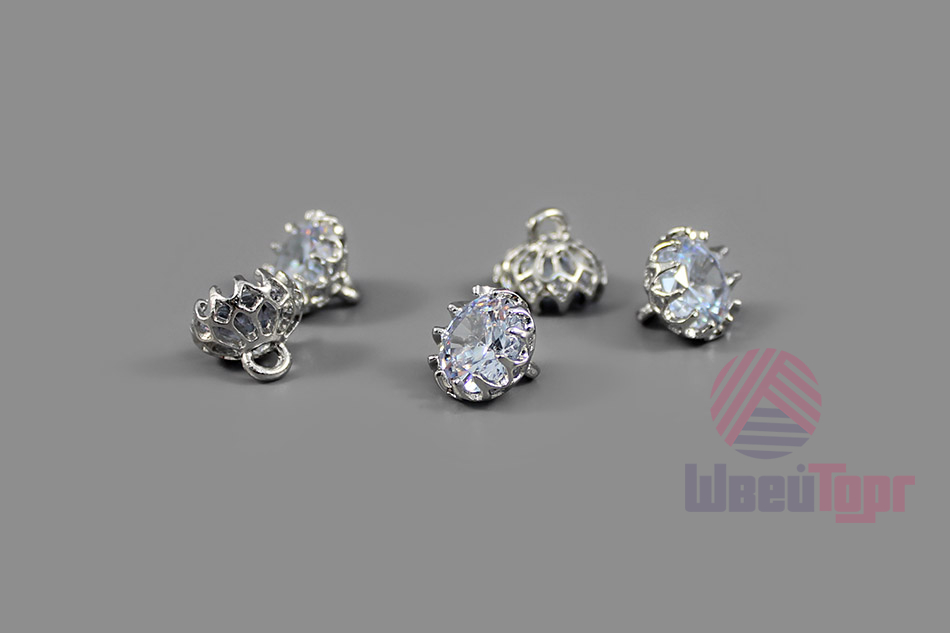 Купить Пуговица №П-277 18L никель со стразами 1/20 шт в Казани оптом по цене 745 руб. с доставкой