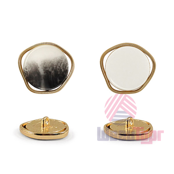 Пуговица на ножке для создания минималистичного и стильного образа. Пуговица собрана из двух частей – золотистая металлическая основа и лицевая часть с лёгким глянцем и интересным окрасом в виде разводов. Пуговица представлена в трёх вариантах расцветки: чёрный/кремовый/золото, белый/золото и бежевый/золото. Сдержанный и интересный элемент для оригинального образа.