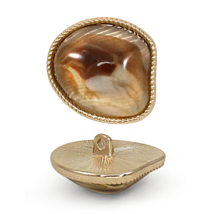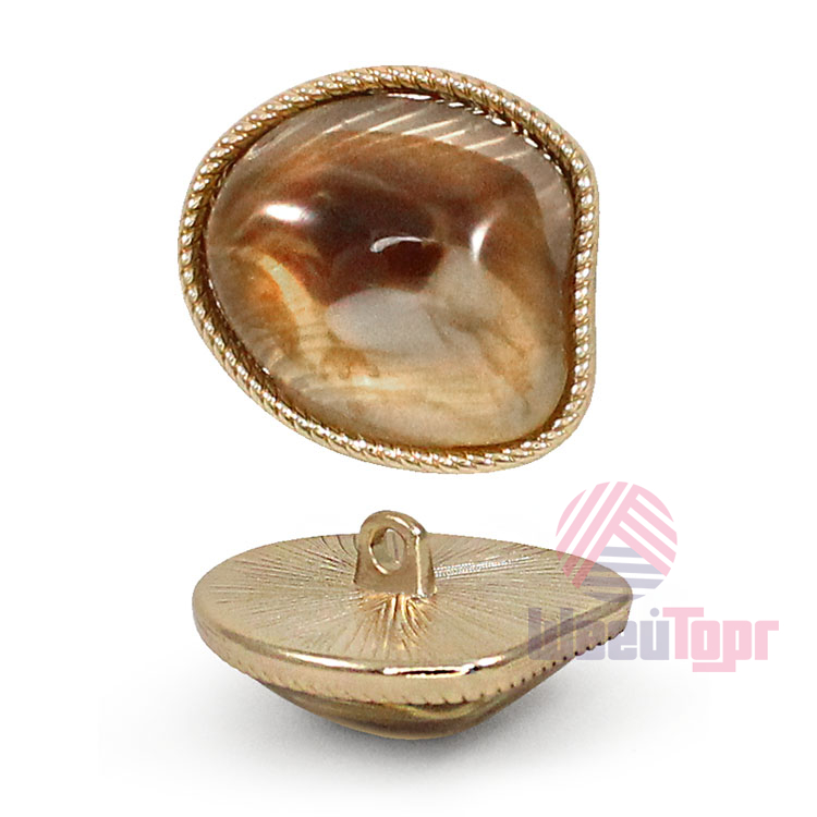 Стильная металлическая пуговица на ножке, имеет нестандартную форму (габаритные размеры - 20х23 мм). Пуговица станет отличным украшением ваших костюмов и жакетов.