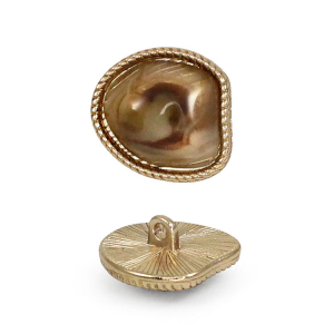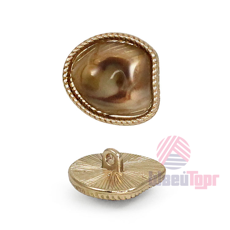 Стильная металлическая пуговица на ножке, имеет нестандартную форму (габаритные размеры - 16х20 мм). Пуговица станет отличным украшением ваших костюмов и жакетов.