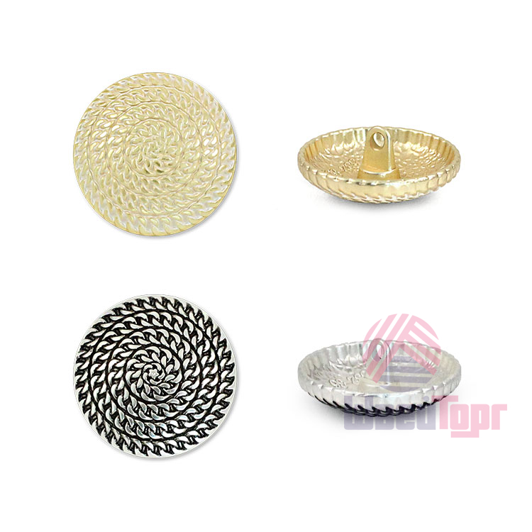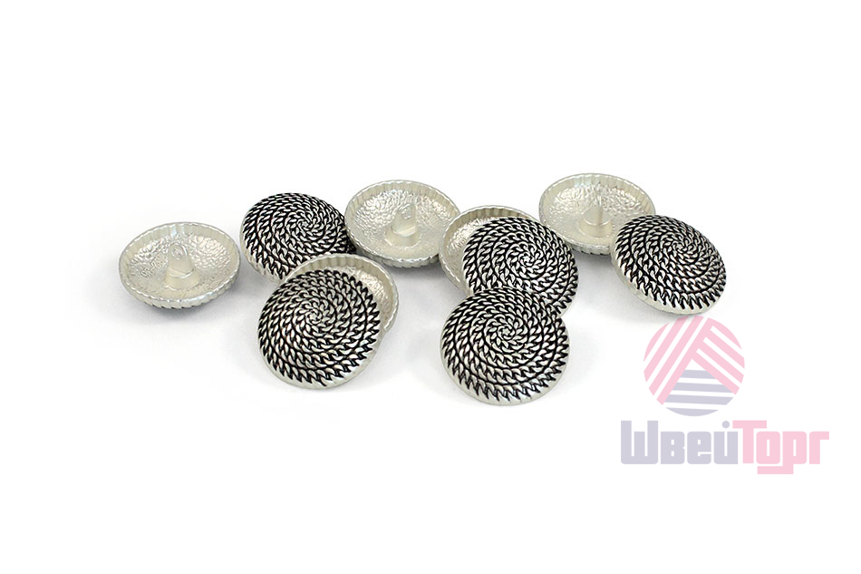 Эта пуговица на ножке сразу привлекает внимание своей уникальной фактурной поверхностью в виде имитированных цепей. Такой выразительный дизайн делает её настоящим акцентом, способным преобразить и украсить любой предмет одежды. Пуговица представлена в двух благородных цветах – серебро и светлое золото, что позволяет подобрать идеальную фурнитуру для вашего проекта, добавляя ему индивидуальности и стиля.
