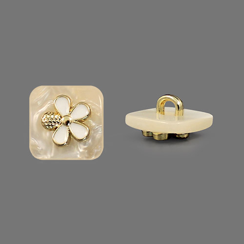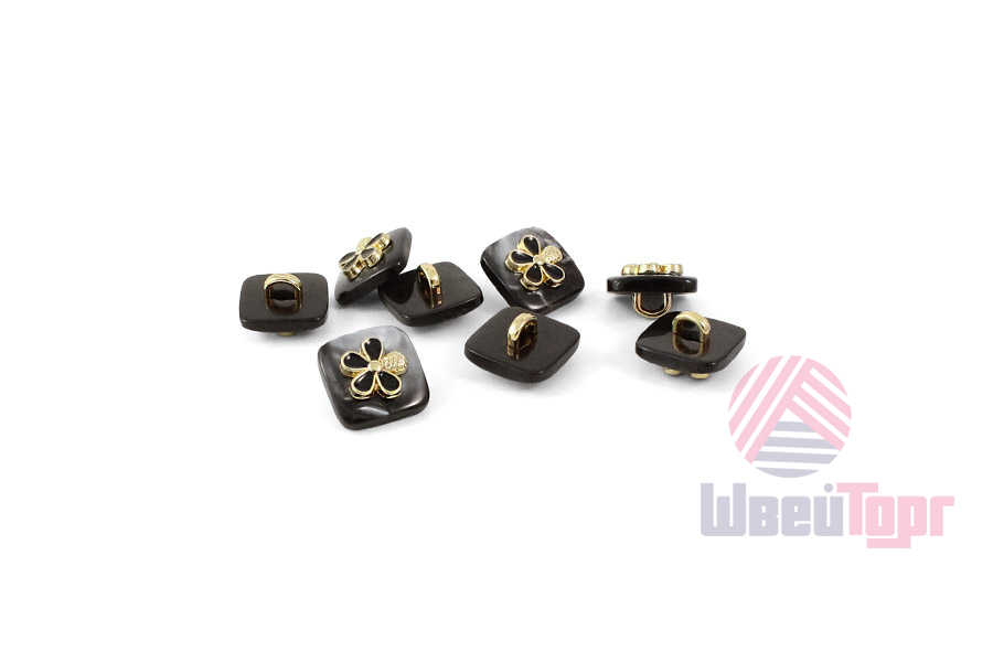 Пластиковая пуговица на ножке, имеет квадратную форму (размер 12х12 мм), станет отличным украшением для костюмов, жакетов и блуз.