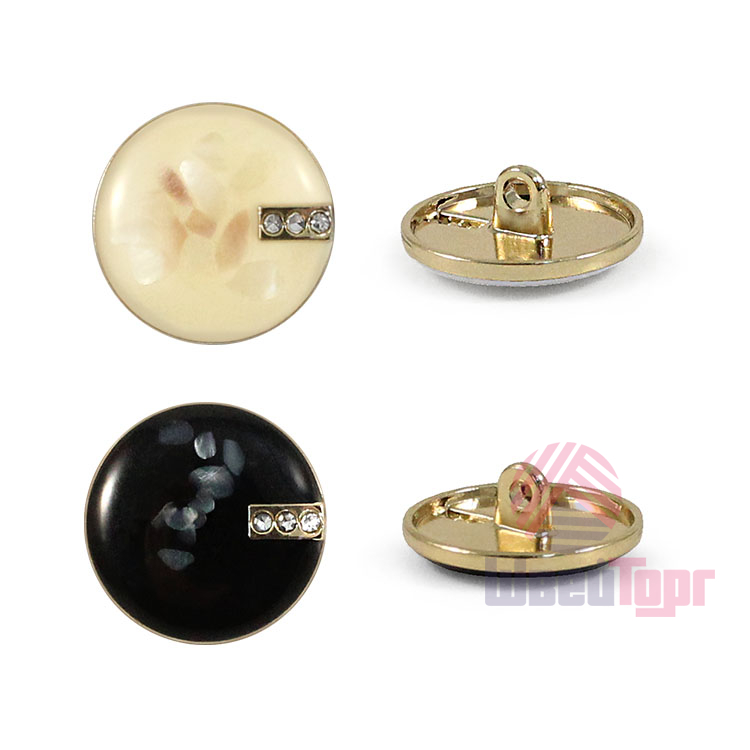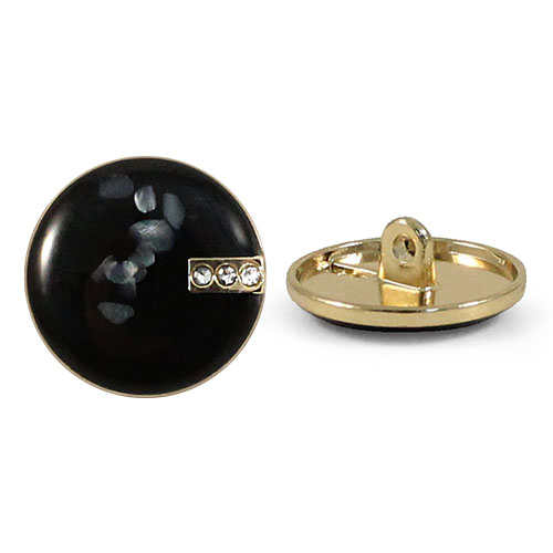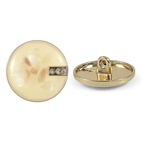 Пуговица на ножке для создания минималистичного и стильного образа. Пуговица собрана из двух частей – золотистая основа и лицевая часть, с интересным эффектом, словно мазки краски застыли под смолой. С лицевой стороны пуговицу украшает накладной элемент с мелкими стразами. Сдержанный и интересный элемент для оригинального образа.