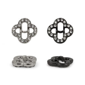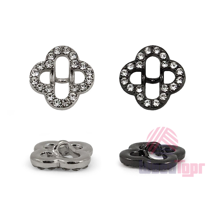 Эта пуговица на ножке станет ярким акцентом вашего наряда. Металлическая основа пуговицы усыпана множеством мелких страз. Форма пуговицы представляет собой "мягкий" крест, с округлыми углами - нежная и утончённая. Пуговица представлена в двух вариантах: чернённый и серебро.