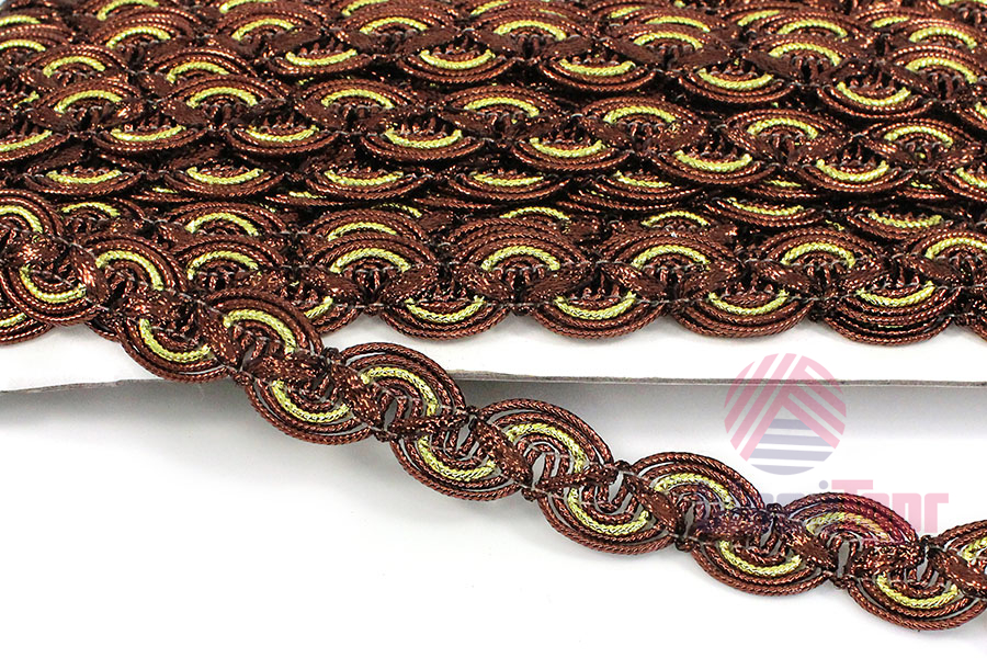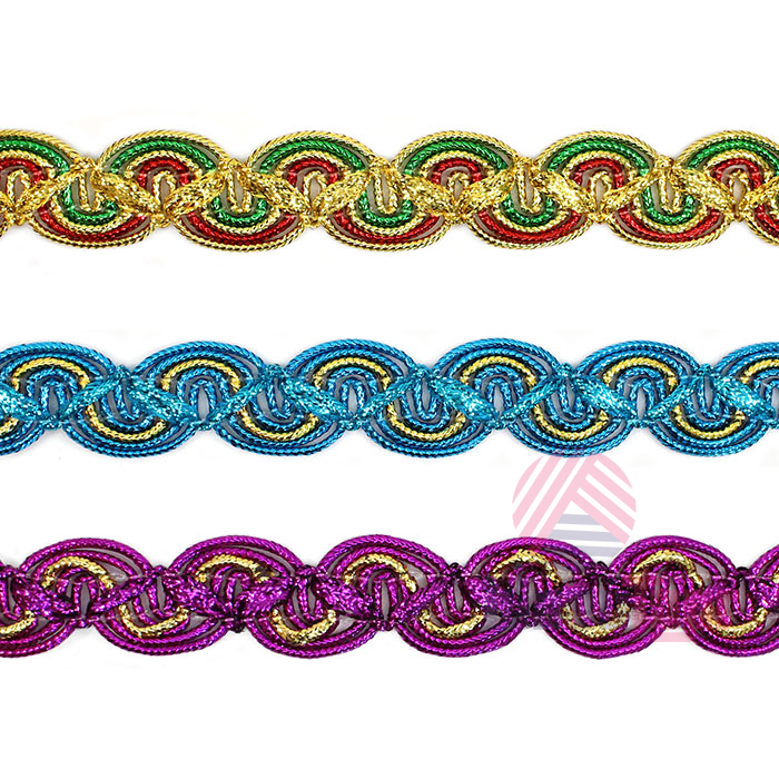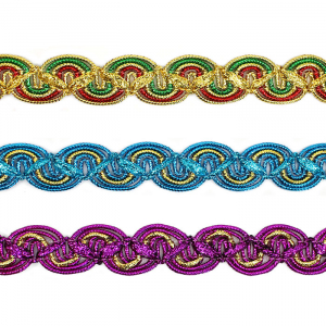 Декоративная металлизированная тесьма служит акцентной отделкой для разнообразных проектов, от скрапбукинга до пошива национальных и сценических костюмов. Плетение тесьмы создаёт красивый и оригинальный узор, а металлизированные нити создают яркий блеск.