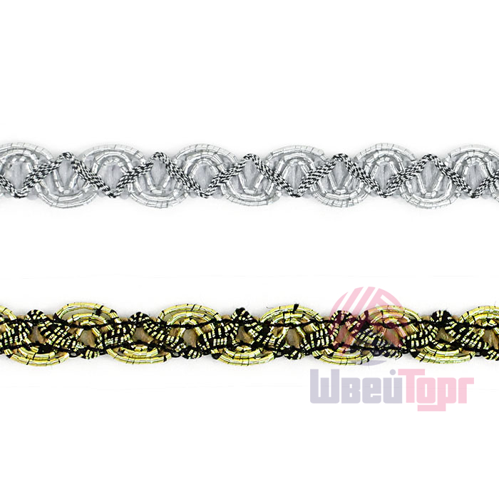 Тесьма доступна в двух цветах: золото и серебро. Она идеально подходит для отделки одежды, декора сценических костюмов, а также для украшения головных уборов и элементов интерьера. Представляет собой прочную плетёную, рельефную тесьму с повторяющимся геометрическим узором. Тесьма пронизана металлизированными нитями, что придаёт ей уникальный блеск. Создавайте свои неповторимые изделия!