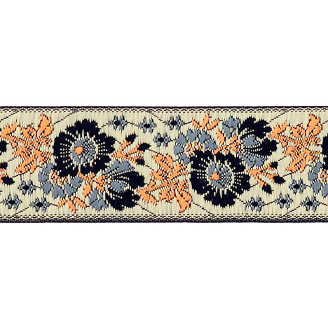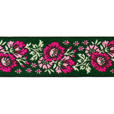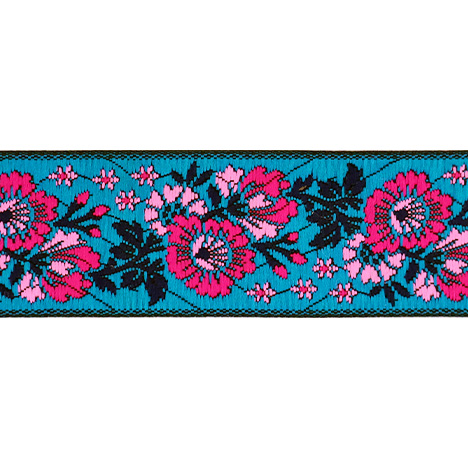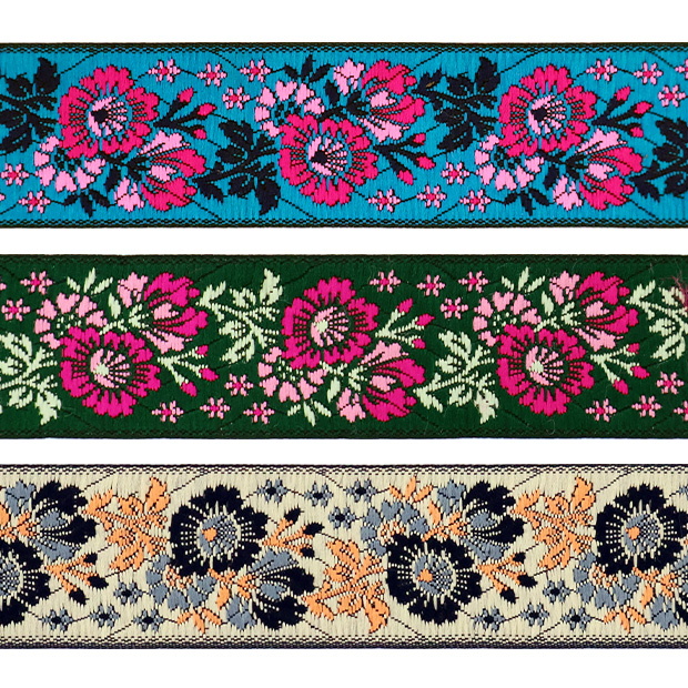 Данная жаккардовая тесьма обладает высокой прочностью, устойчива к растяжению и истиранию. Рисунок формируется непосредственно в процессе плетения, что придаёт тесьме эффект вышивки. Благодаря высококачественному полиэстеру тесьма сохраняет яркость цветов и не теряет своего внешнего вида долгое время.
