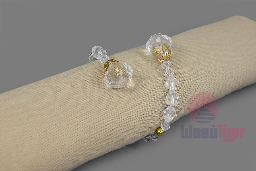 Готовый элемент декора из прозрачных гранёных бусин с золотыми акцентами на прочной проволочной основе, которая позволяет легко придавать ему любую желаемую форму. Крупные бусины на концах (D-2см), обрамлённые изысканными золотистыми резными концевиками, добавляют композиции выразительности.