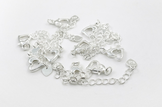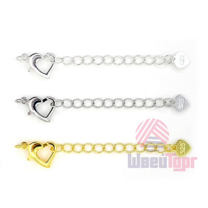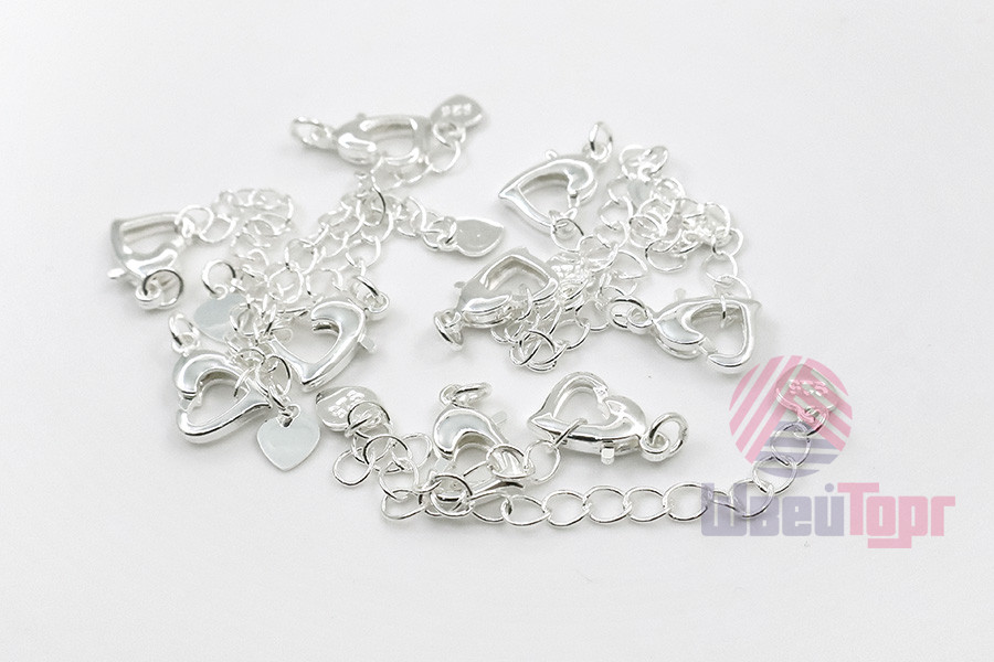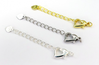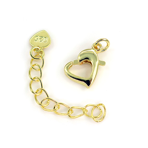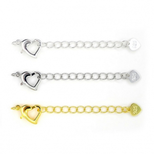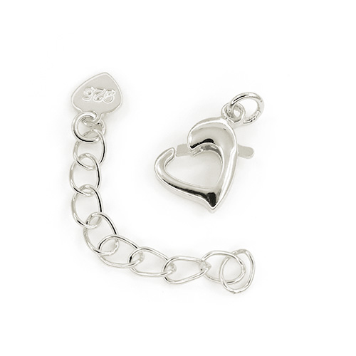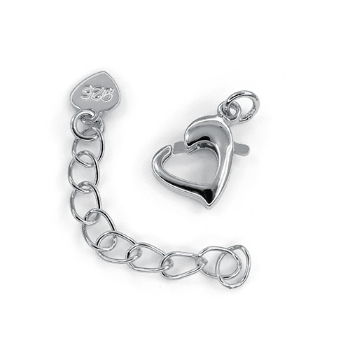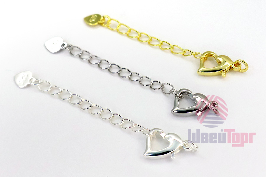 Ювелирная застёжка-карабин для украшений с удлинительной цепочкой. Карабин выполнен в форме изящного ассиметричного сердца и дополнен соединительным колечком. В комплекте удлинительная цепочка, которая позволяет изменять длину украшения. На конце цепочки находится маленькая подвеска в форме сердечка с тиснёной маркировкой «925». Застёжка применяется при изготовлении или ремонте браслетов, бус, чокеров и ожерелий, обеспечивает удобное открывание и закрывание, надёжно фиксирует изделие и одновременно выполняет декоративную функцию благодаря форме сердца.
